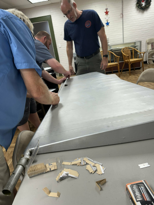 Work has begun to remove the fabric from the 1944 Howard DGA15. This has to be done carefully to create templates for the new panels. Would you like to give a hand with our maintenance crew? No experience necessary and one of the "perks" of being an active member. | |