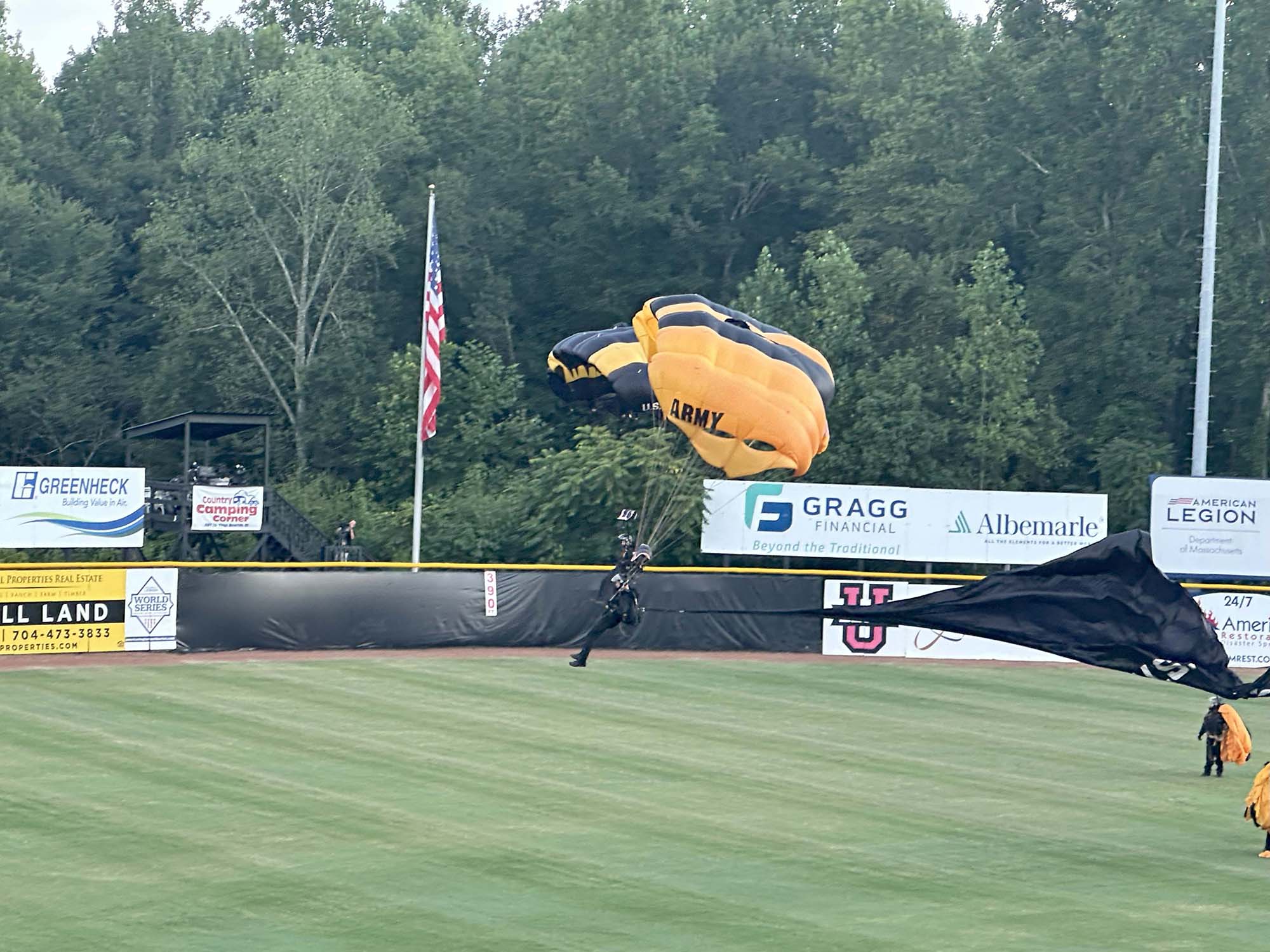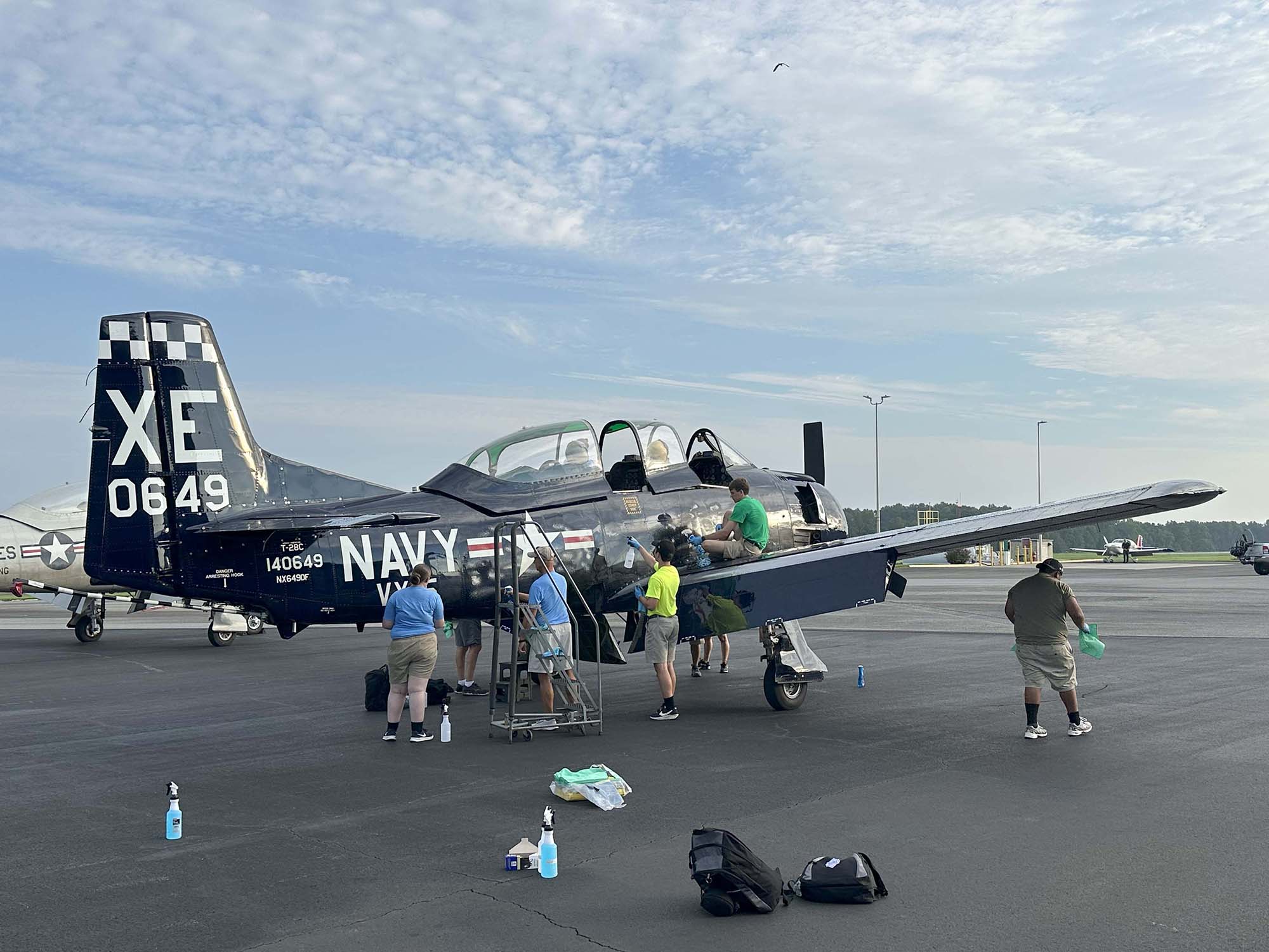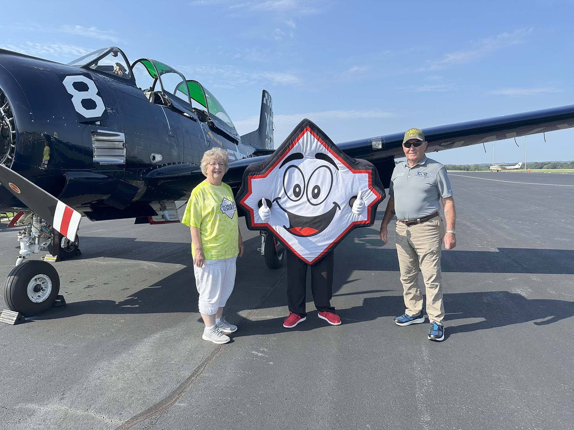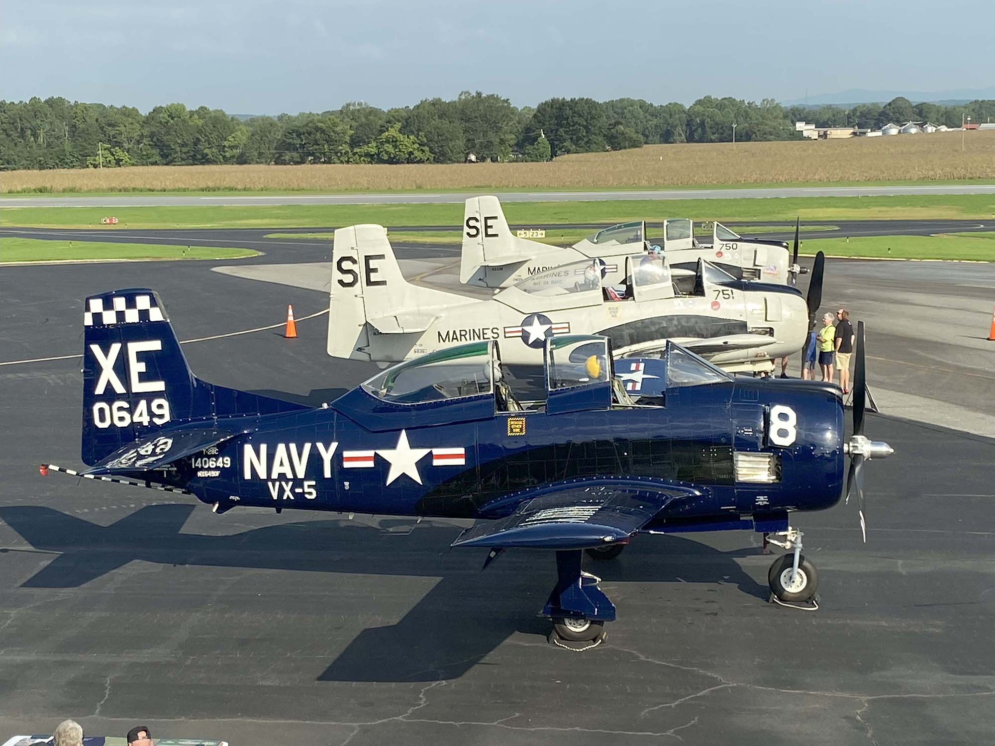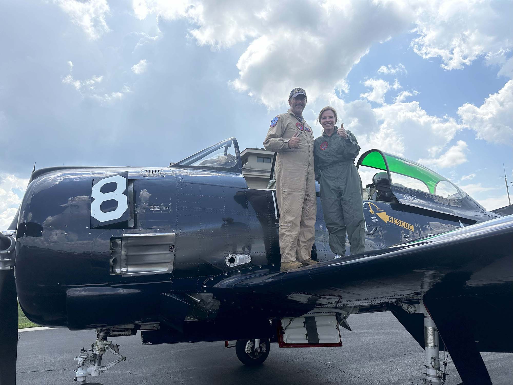| Another successful event increasing awareness of aviation at ALWS! Congratulations to North Carolina Supreme Court Justice Tamara Barringer, who enjoyed her VIP ride with Rich Henderson. (In the picture above, the U.S. Army's Parachute Team, the Golden Knights', plane is behind our T-28s.)
